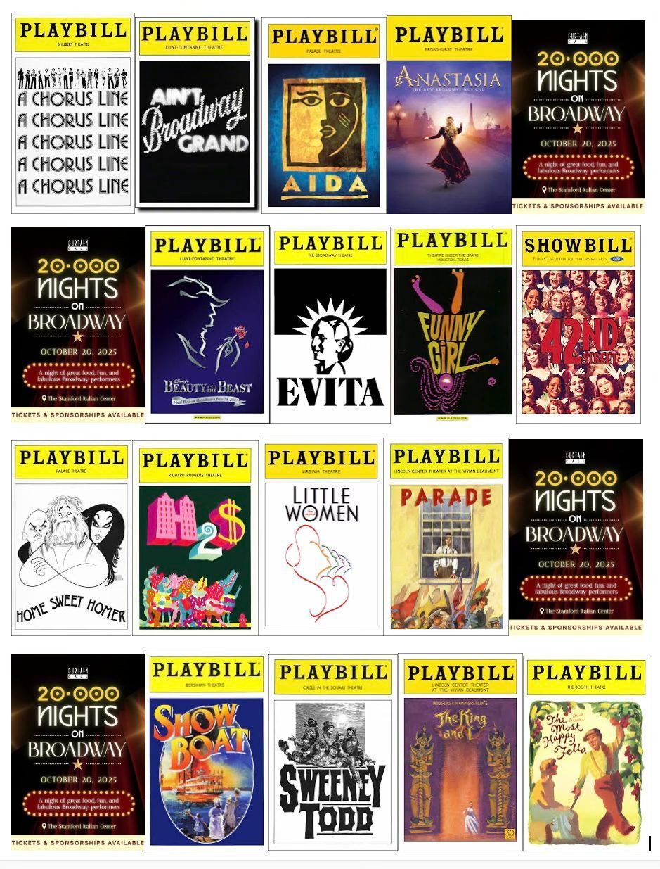 WHAT DO ALL THESE BROADWAY PLAYBILLS HAVE IN COMMON? EACH OF THE SHOWS FEATURED PERFORMANCES BY THE GUEST ARTISTS IN CURTAIN CALL'S FALL FUNDRAISER: 20,000 NIGHTS ON BROADWAY!